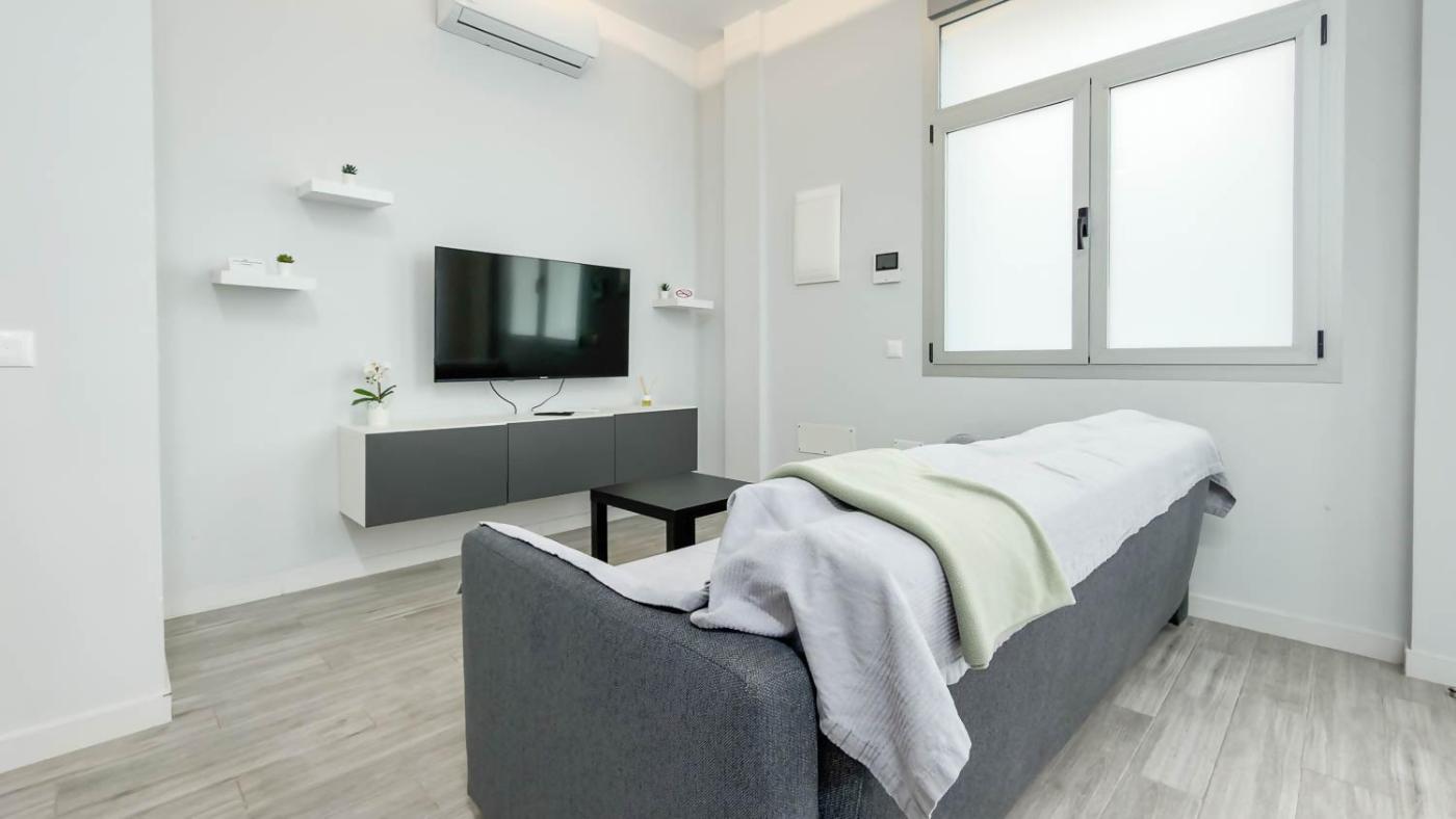 Apartamento de 1 dormitorio. Featuring a private entrance, this air-conditioned apartment consists of 1 living room, 1 separate bedroom and 1 bathroom with a walk-in shower and a hairdryer. The fully equipped kitchen features a refrigerator, kitchenware, an oven and a microwave. The apartment provides a washing machine, a coffee machine, a wardrobe, tumble dryer, as well as a flat-screen TV. The unit offers 2 beds.