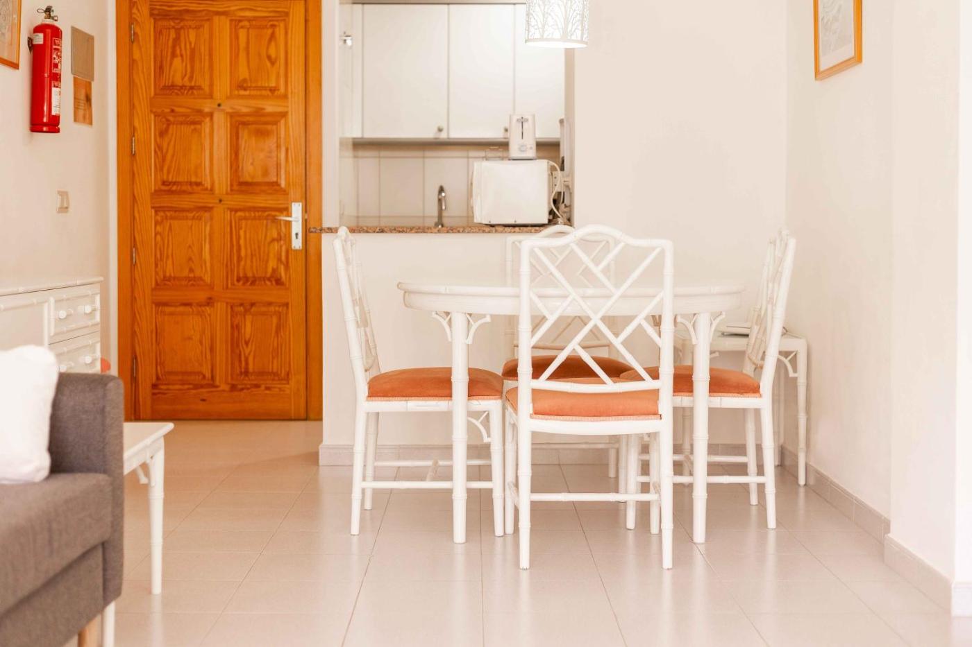 El apartamento tiene 2 dormitorios, 1 baño, ropa de cama, toallas, TV, zona de comedor, cocina totalmente equipada y terraza con vistas a la piscina.